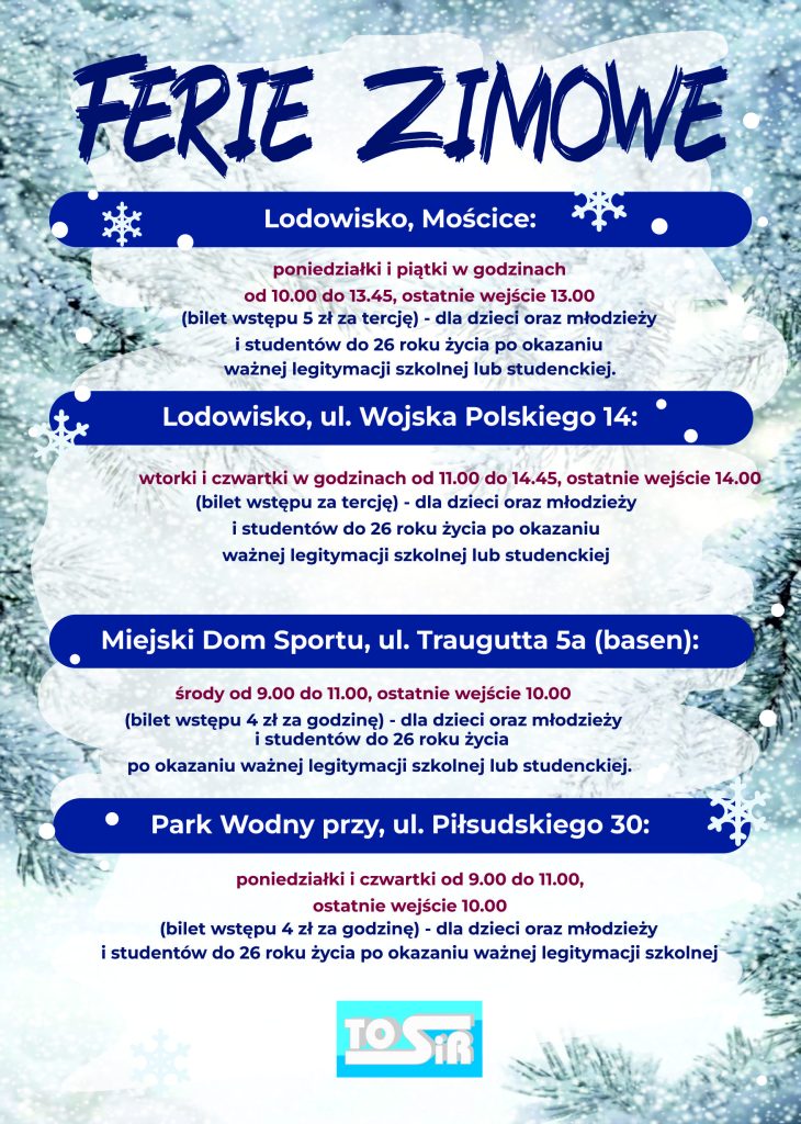 Tarnów, dnia 09.01.2026 r. Dyrektorzy Szkół Podstawowych w Tarnowie Tarnowski Ośrodek Sportu i Rekreacji uprzejmie